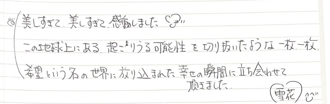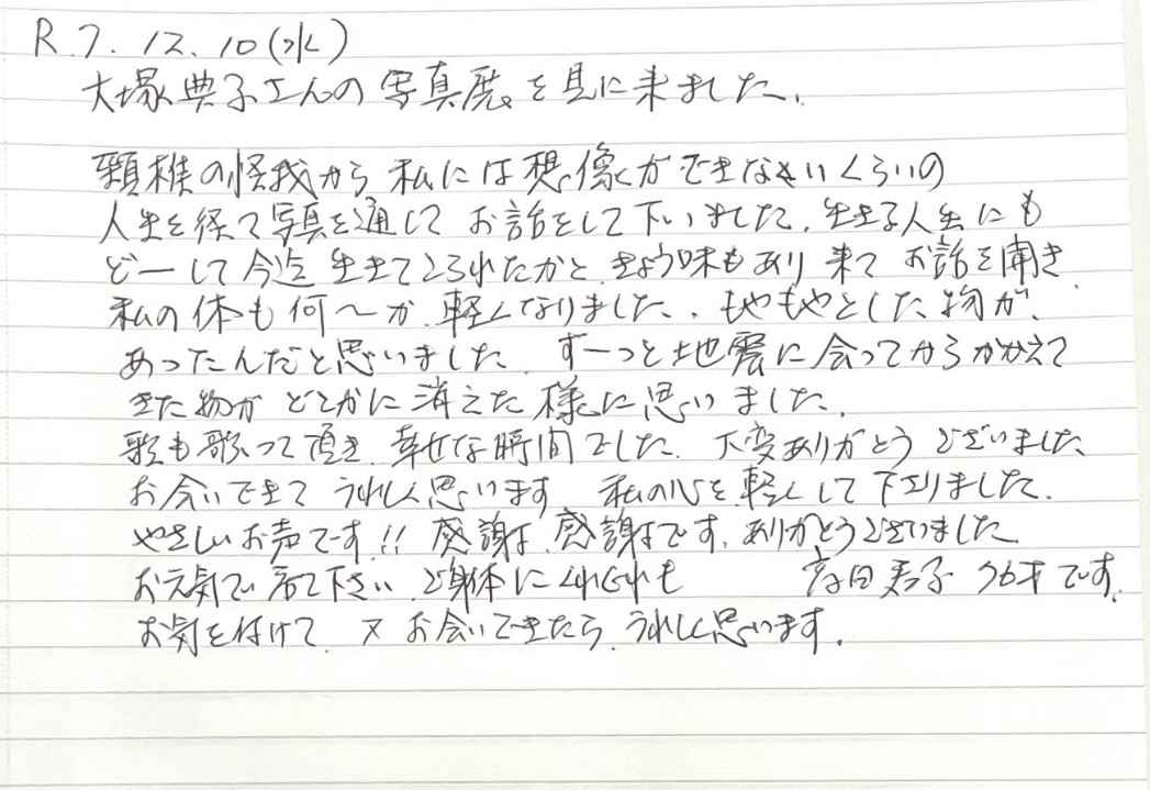 能登の被災地の仮設住宅にお住まいの方が書いて下さった写真展の感想