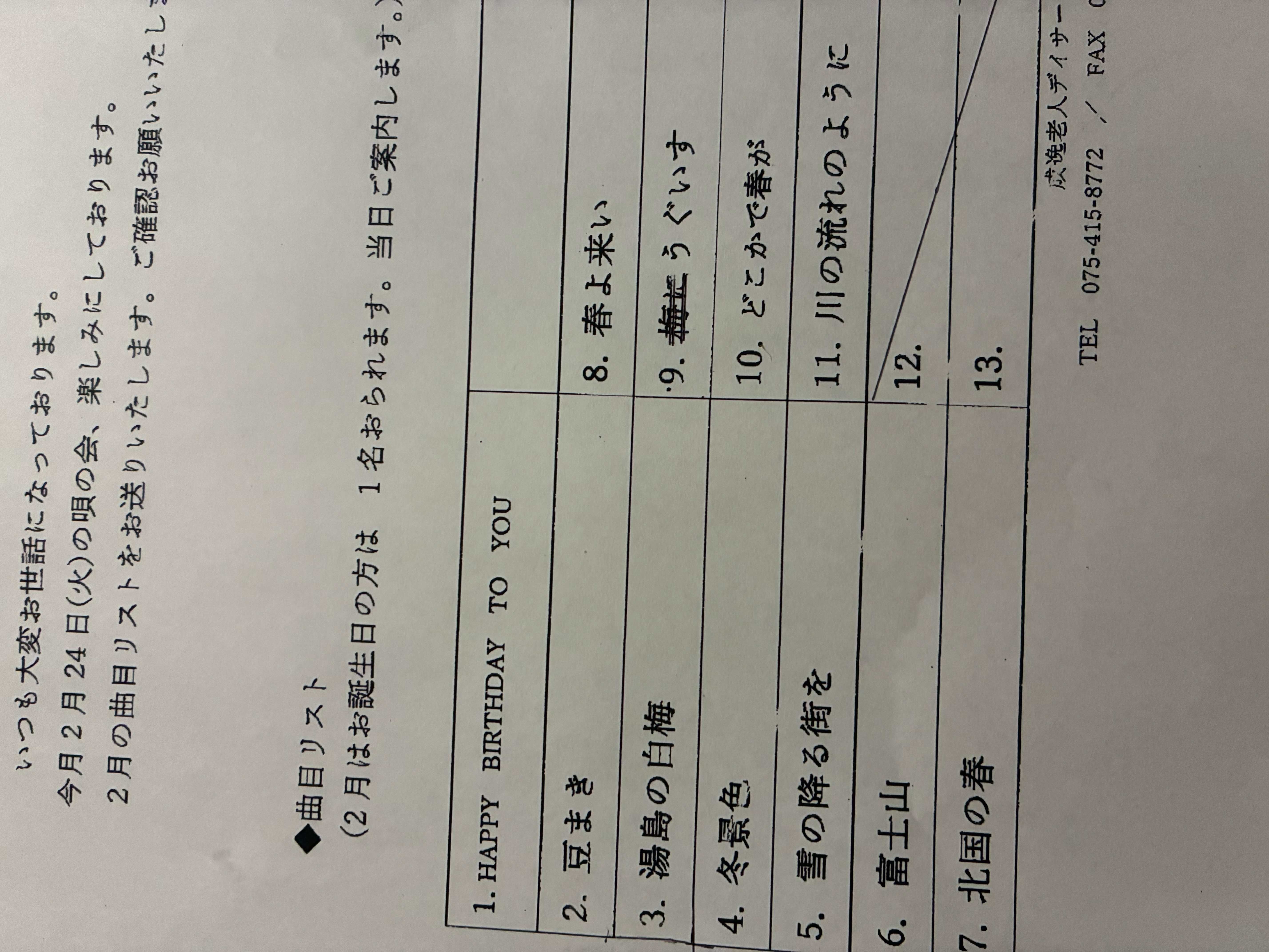 紫野老人デイサービスセンターからリクエスト曲が届いていました。