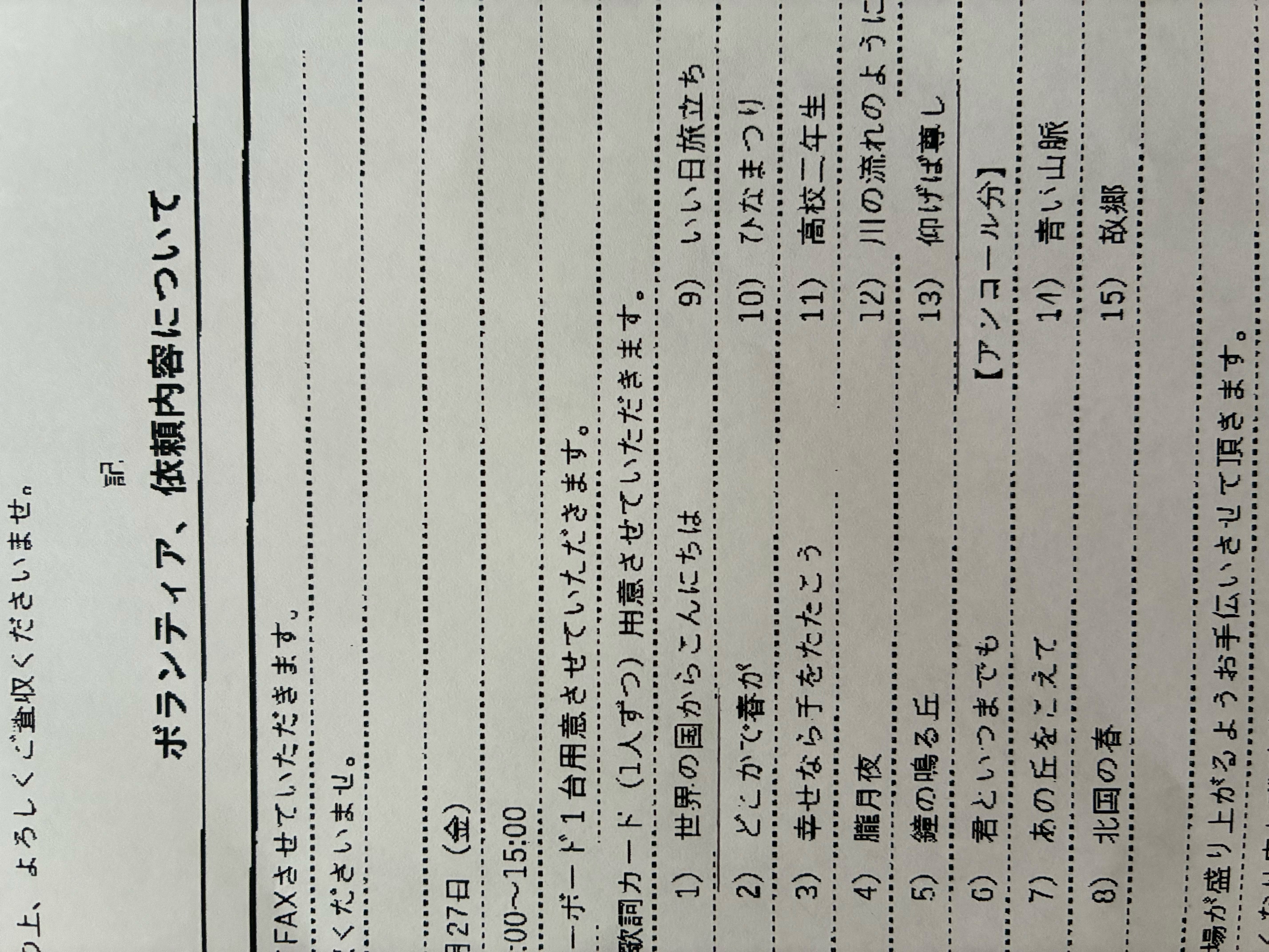 成逸デイサービスセンターさんからリクエスト曲が届いていました。
