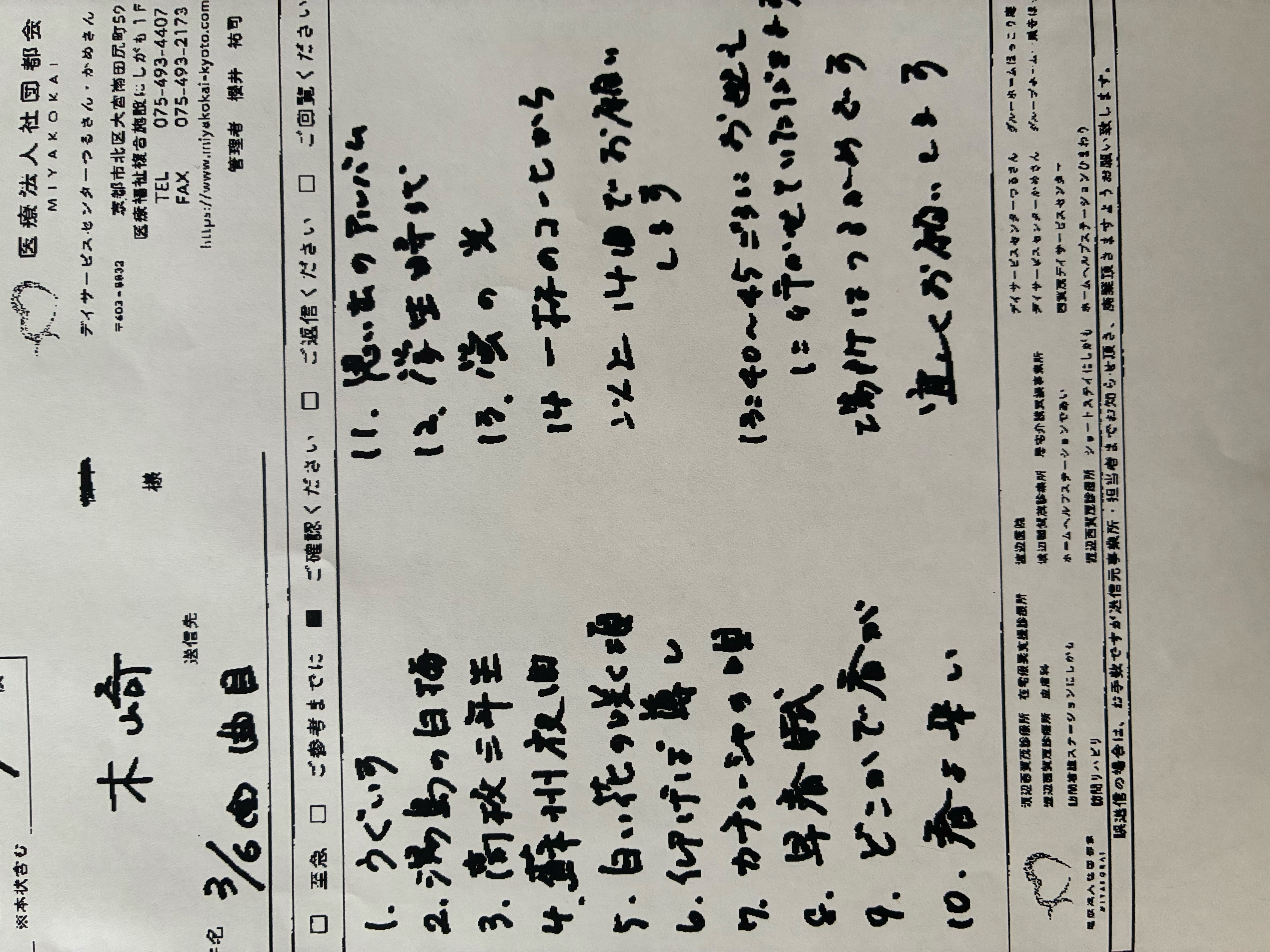 紫野デイさんに参加されたおふたりの新しい方のコメント