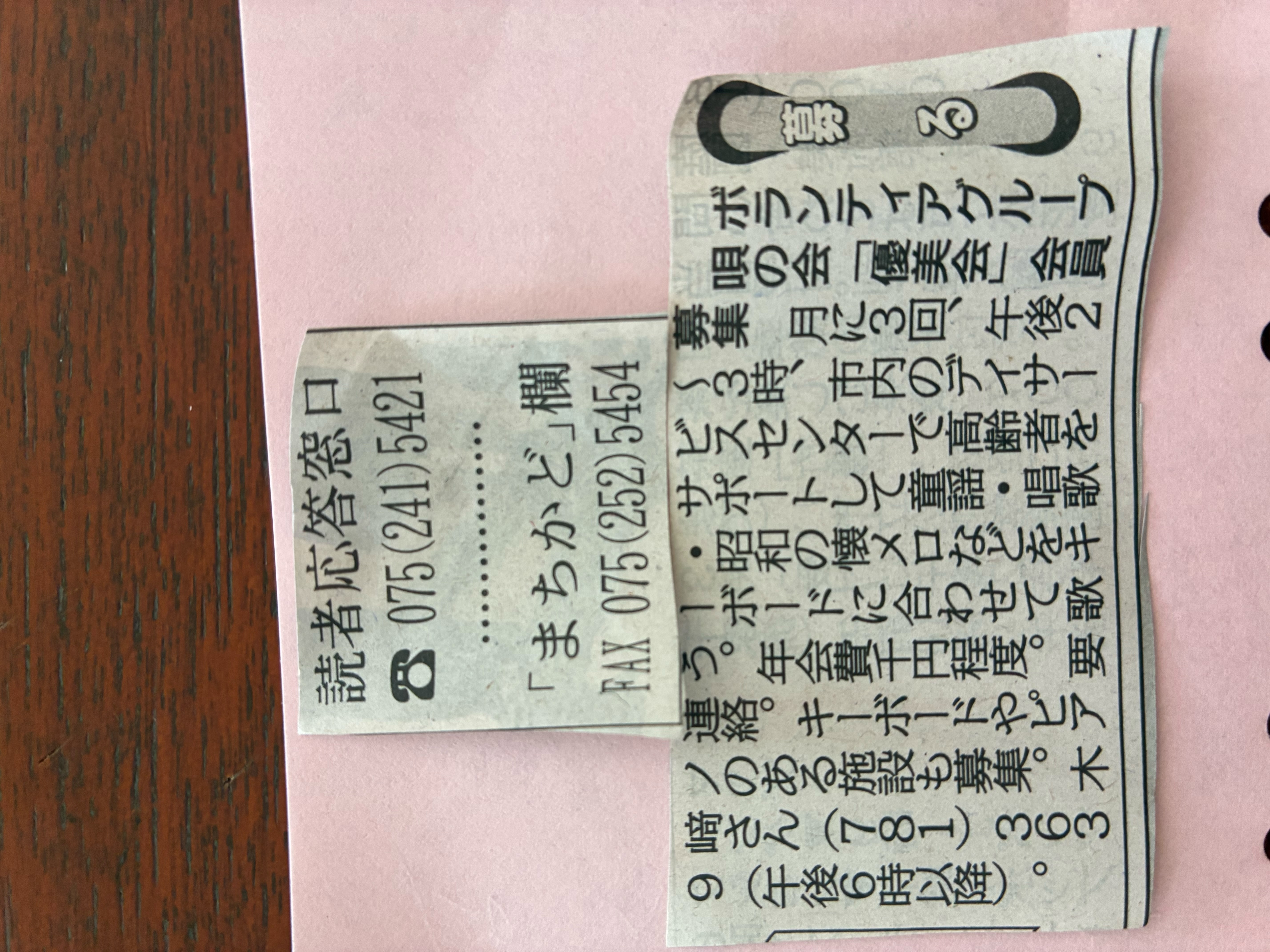 2025年7月4日、京都新聞朝刊7ページのおとなナビの左下に優美会が載りました。