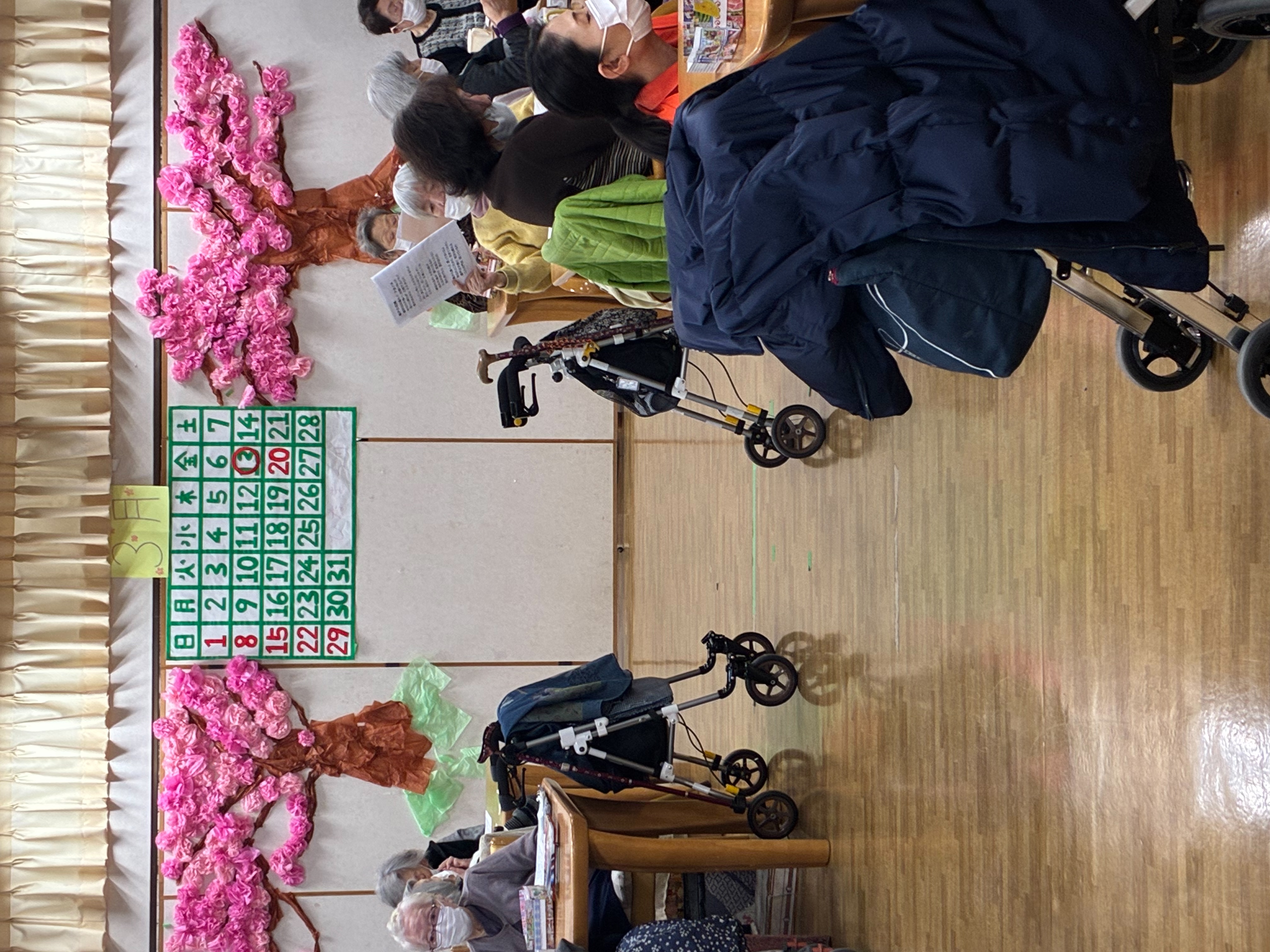 3月13日 紫野老人デイサービスセンターさんへ行ってきました。外は寒かったですが、デイルームは 暖かいでした。